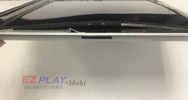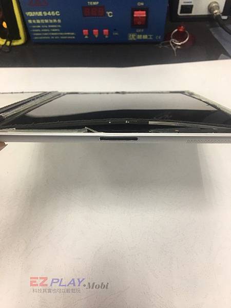 先給各位客官看一下平板,真的是很嚴重呢!觸控玻璃跟液晶螢幕都已經快要被頂到破掉了,好險WIFI 排線沒有因為電池膨脹面板分離而扯壞掉。